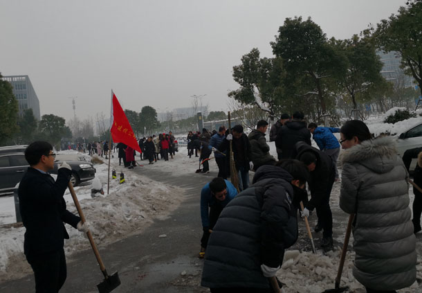 近日蕪湖市普降暴雪,給人民的出行造成諸多不便,帶來極大安全隱患。我公司積極響應市委、市政府的號召,于1月26日牽頭召集金融服務區(qū)進駐單位建投公司、宜居公司、交投公司、民強公司、大橋公司、浦發(fā)銀行、農發(fā)行、國元農保、光大銀行、奇瑞徽銀及大華事務所等十余家單位,傳達市文明辦《關于立即組織人員掃雪除冰的緊急通知》,并對園區(qū)道路進行責任區(qū)劃分,約定統(tǒng)一行動。
